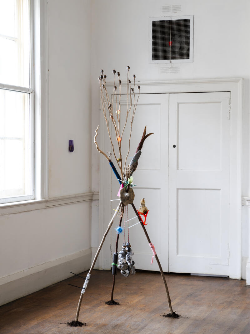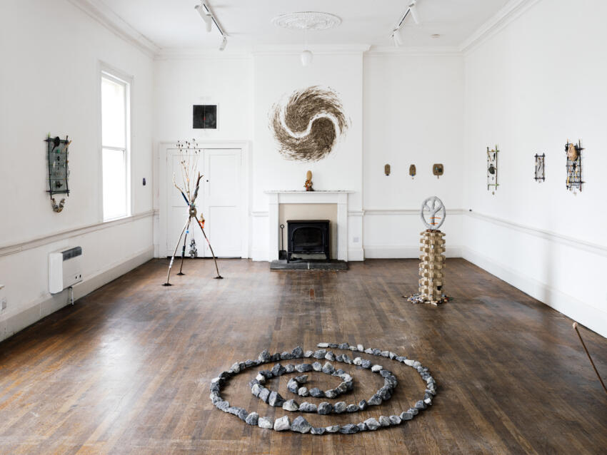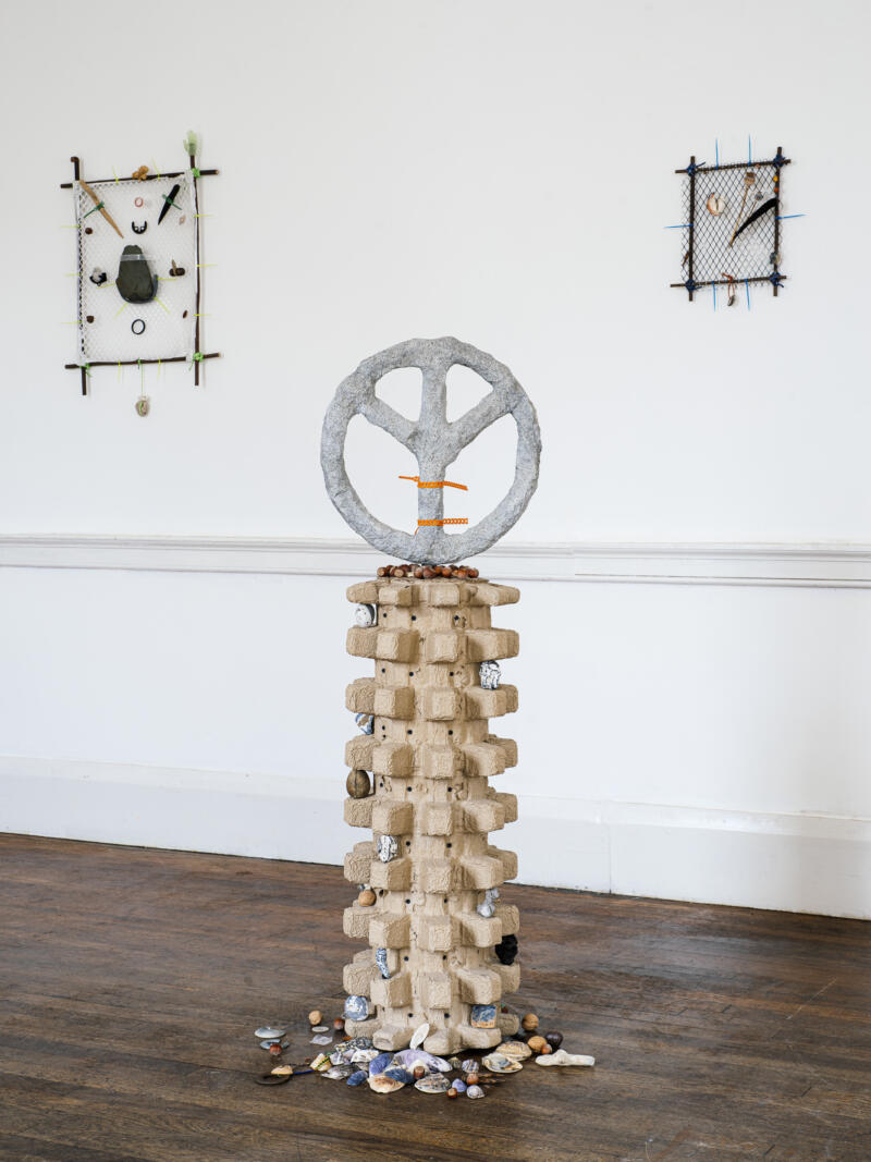 The exhibition is an exercise in world-building, works are conglomerated together to imagine the artefacts of a speculative culture inhabiting an uncertain world full of strange, dislocated symbols and complicated, contradictory materials within a precarious changing environment. It draws energy from a trio of works of speculative fiction: Ursula K. Le Guin’s Always Coming Home, Angela Carter’s Heroes & Villains and Russell Hoban’s Riddley Walker. The works in Archipelago may be maps, way-markers, relics or offerings.